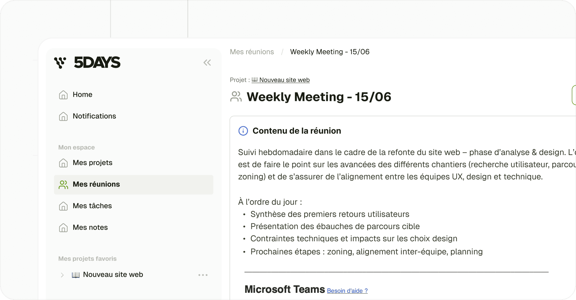 With 5DAYS, AI transforms your project memory into structured deliverables in seconds.