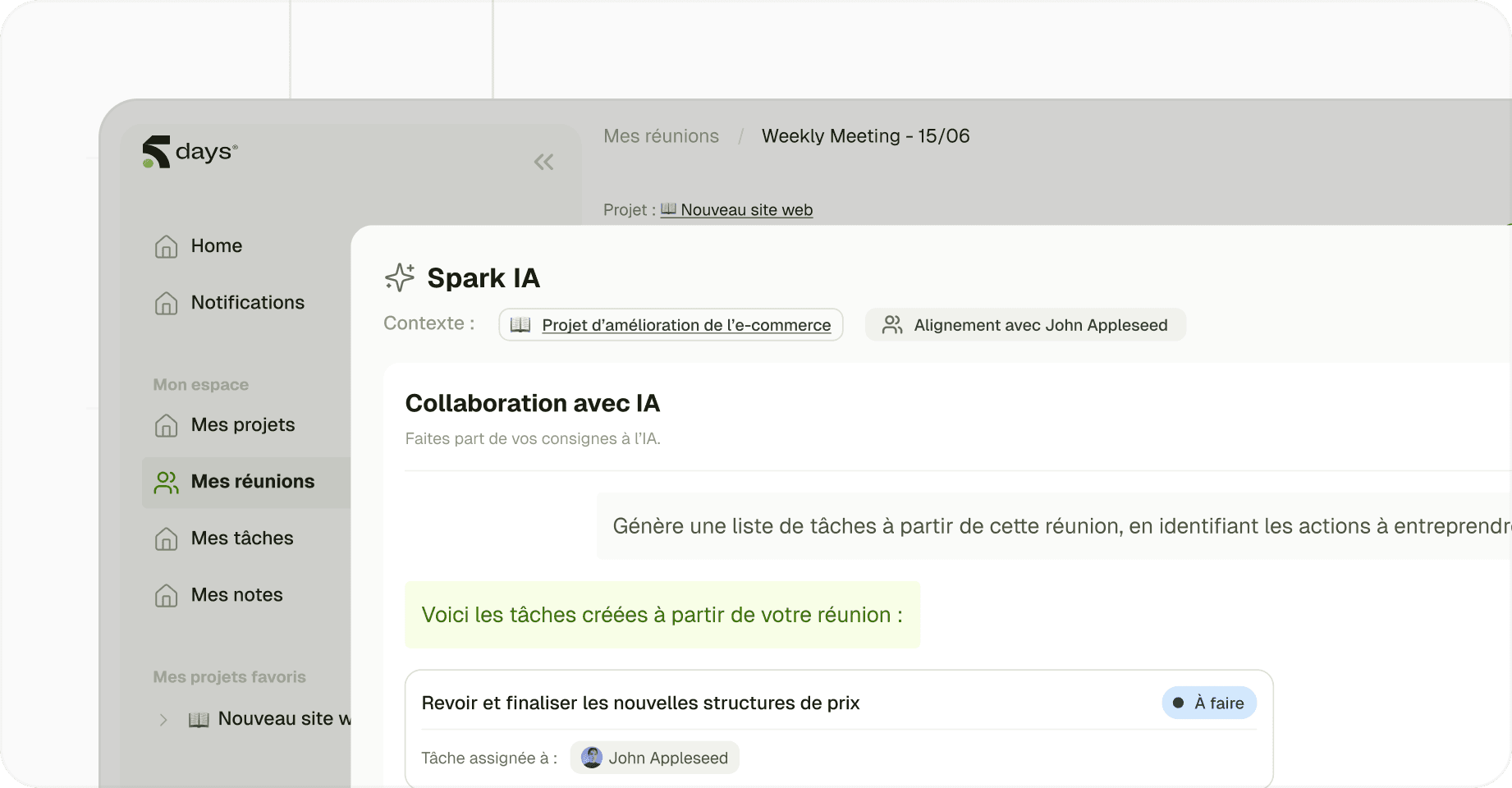 5DAYS détecte automatiquement les tâches évoquées :